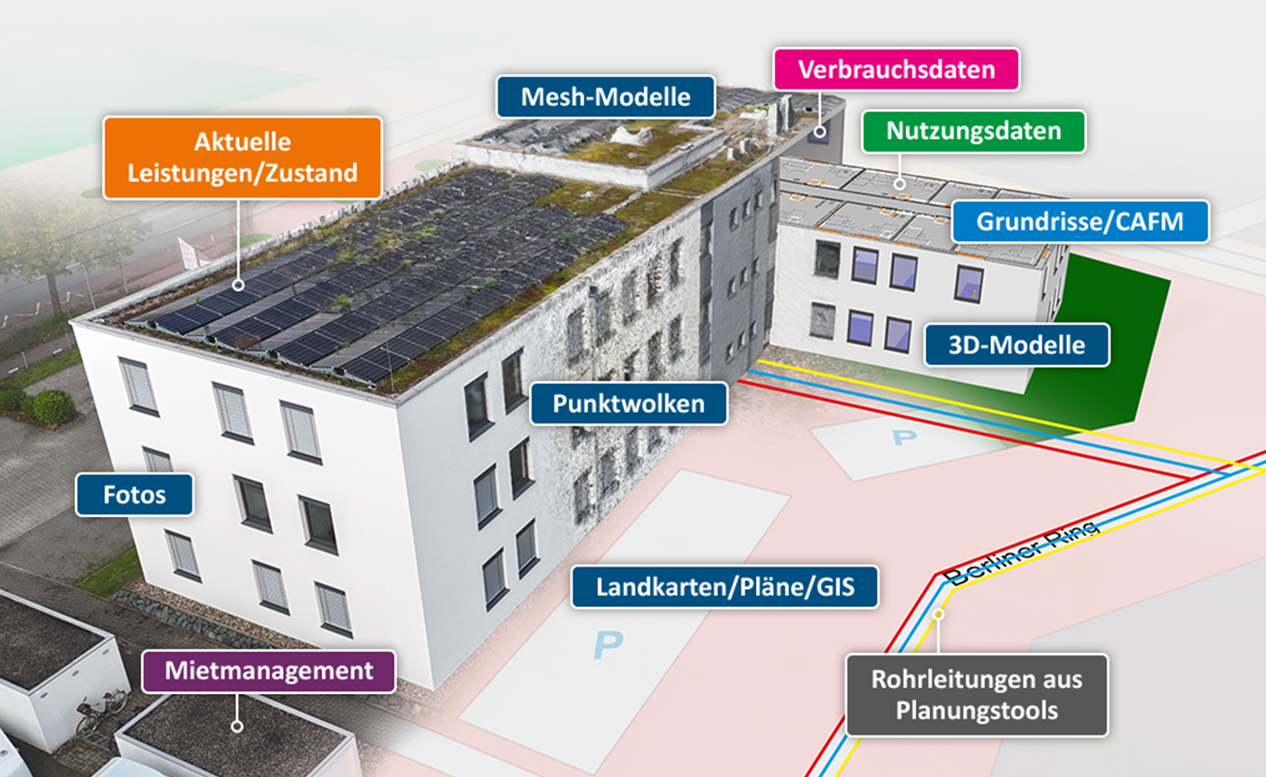 Die Visual Intelligence Platform beendet das, indem sie alle Ihre vorhandenen Daten (wie u.a. BIM-Modelle, Punktwolken, Fotos, GIS-Informationen, 3D-Modelle oder klassische Systemdaten) auf einer gemeinsamen geometrischen Ebene zusammenführt. Statt Daten in Silos zu verstecken, sehen Sie alles direkt auf einer Oberfläche. Ohne Suchen. Ohne Systemwechsel. Und das selbst bei Datenmengen im Terabyte-Bereich: Die browserbasierte Plattform läuft performant auf handelsüblichen Rechnern und mobilen Endgeräten.